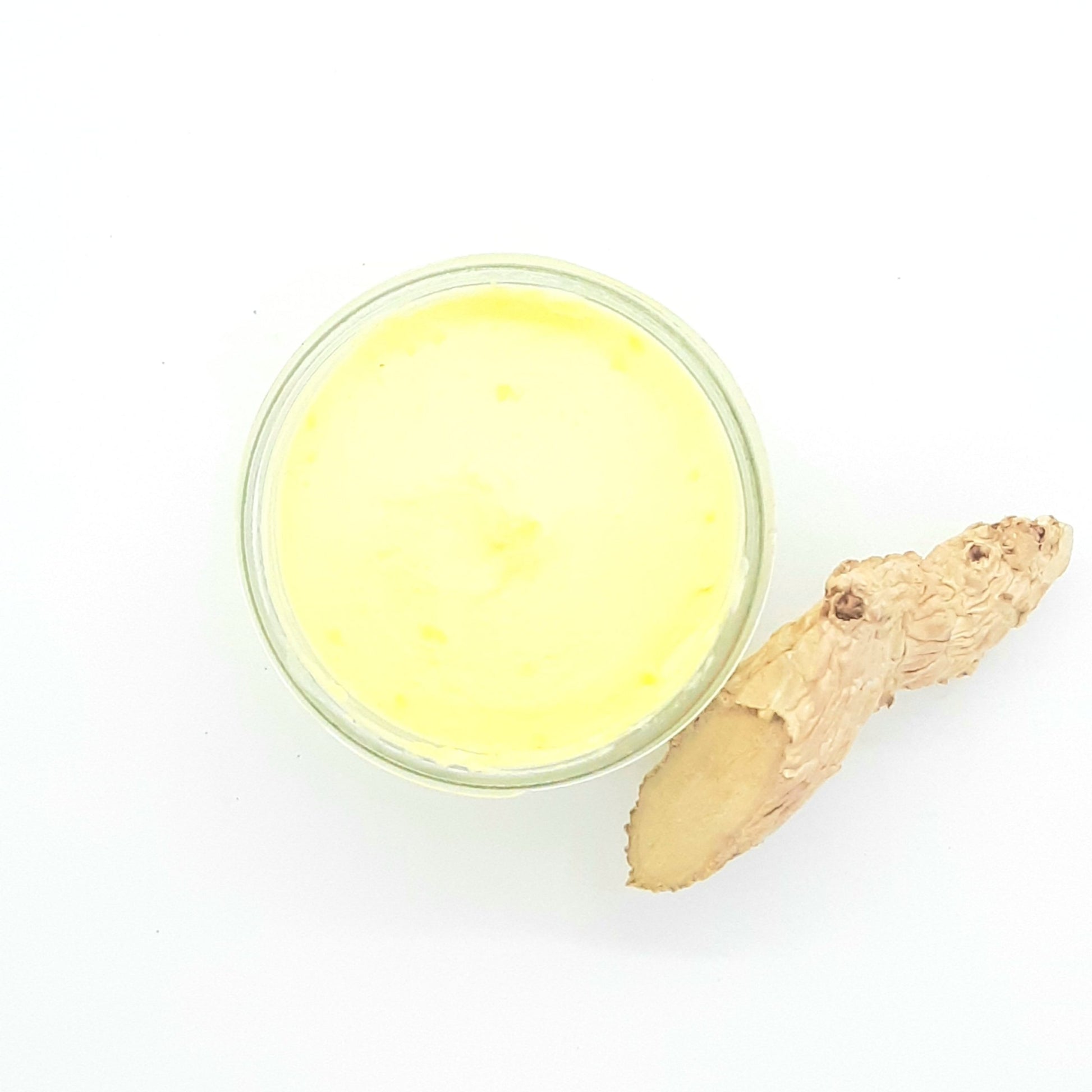 Contains: pure shea butter, organic argan oil, organic avocado oil infused with calendula & marigold flowers, ginger essential oil, lime essential oil