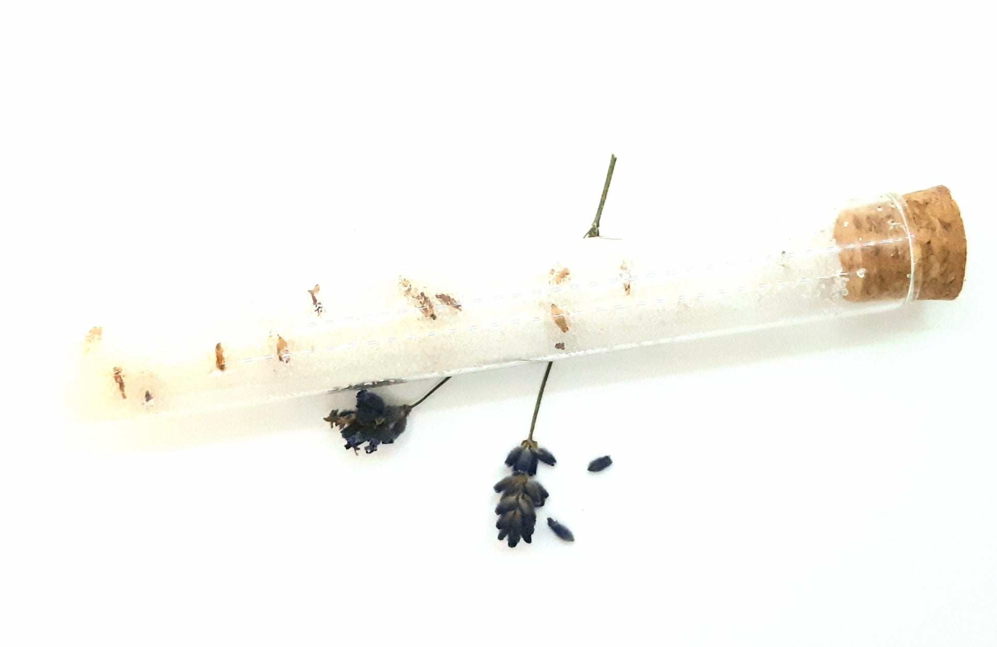 Contains: Dead Sea salt, fractionated coconut oil, lavender essential oil, dried home-grown lavender buds