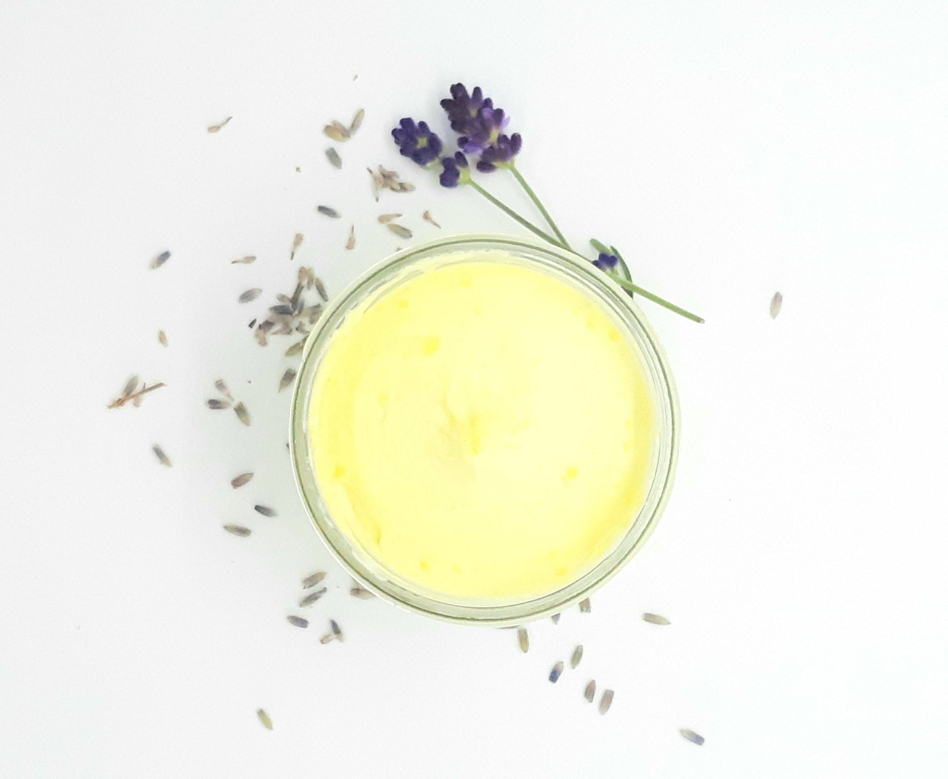 Contains: pure shea butter, organic avocado oil infused with calendula & marigold, organic argan oil, lavender essential oil