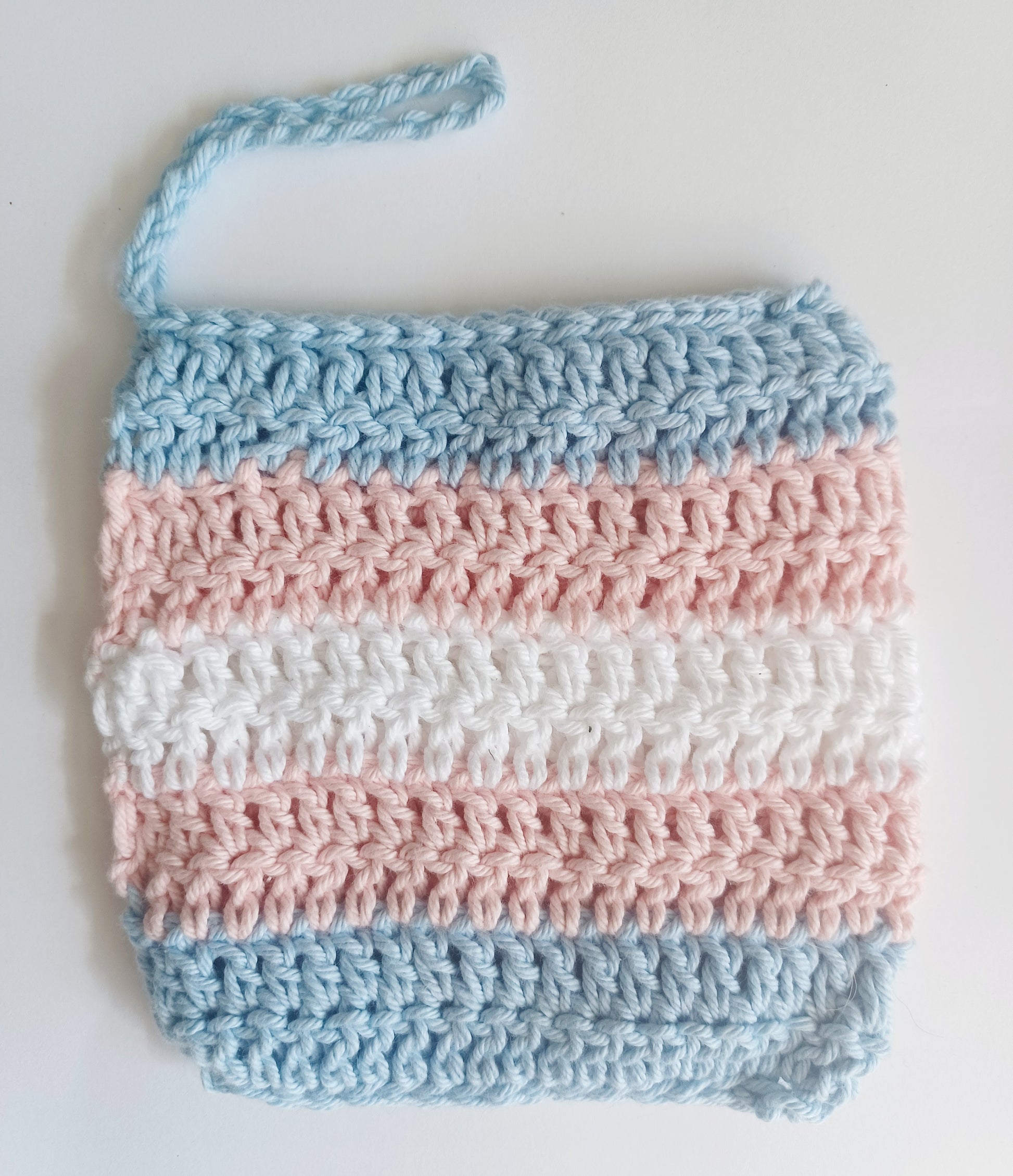 Our handcrafted washcloths are constructed in a mitt style, with a loop for hanging to dry.