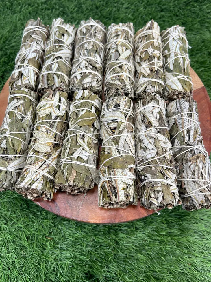 These gorgeous smudge sticks are handcrafted from ethically harvested Yerba Santa, otherwise known as black sage.